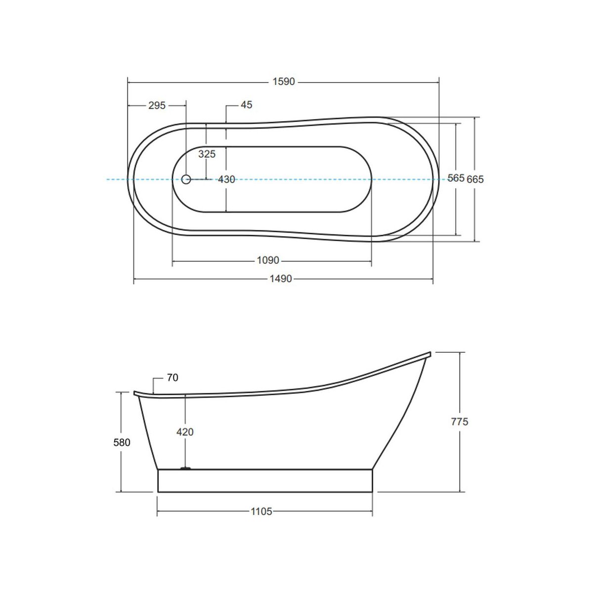 - Füße, weißer Klick-Klack-Siphon im Preis der Wanne enthalten