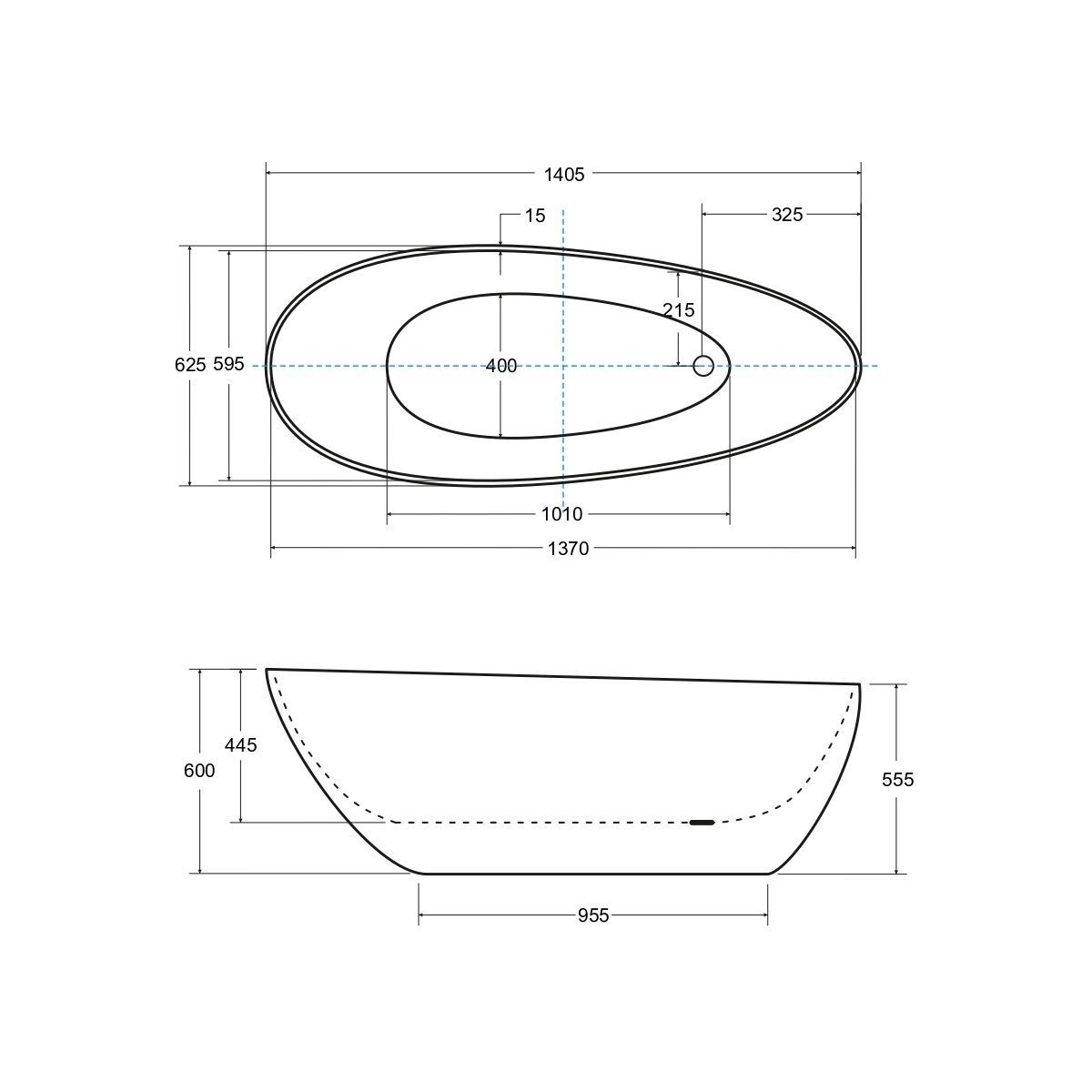 Besco Goya Freistehende Badewanne 140.5x62.5 cm oval zweifarbig #WMMC-140GKC