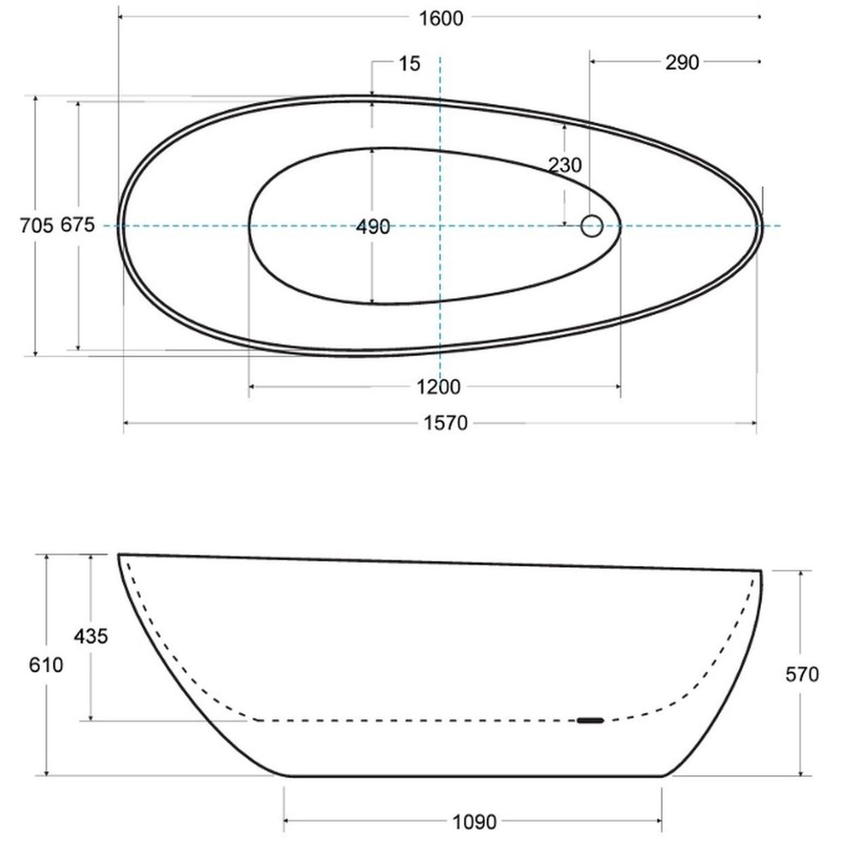 Besco Goya Freistehende Badewanne 160x70.5 cm oval weiß-schwarz-zweifarbig #WMD-160-GBW