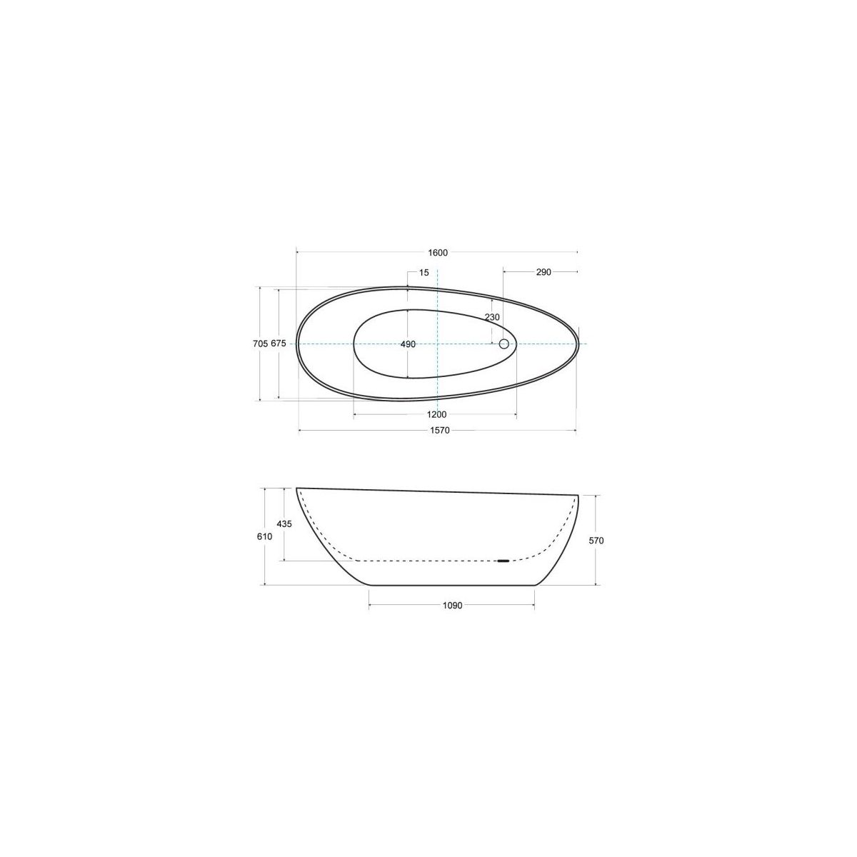 Besco Goya Freistehende Badewanne 160x70.5 cm oval weiß-schwarz-zweifarbig #WMD-160-GWB