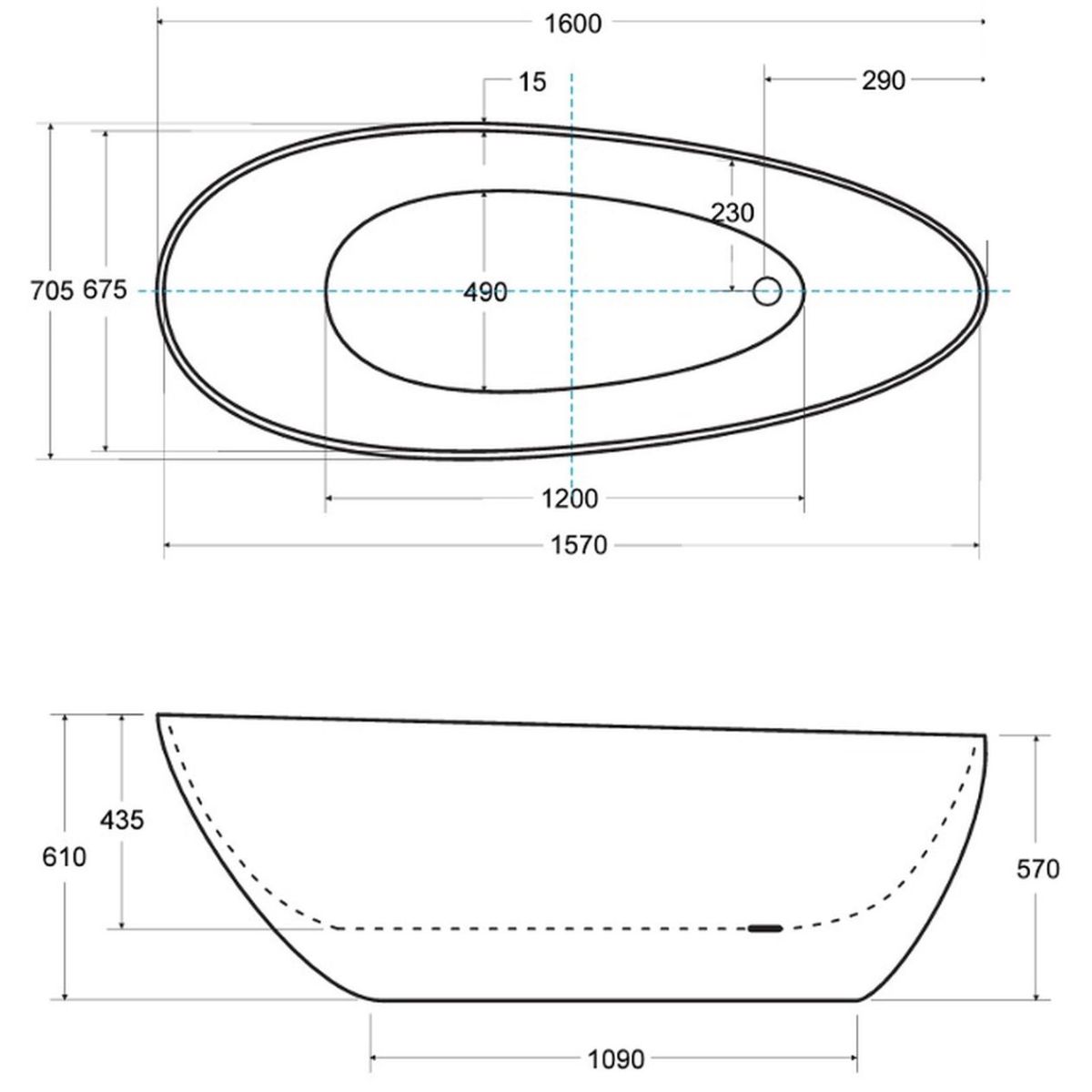 Besco Goya Freistehende Badewanne 160x70.5 cm oval schwarz #WMD-160-GB