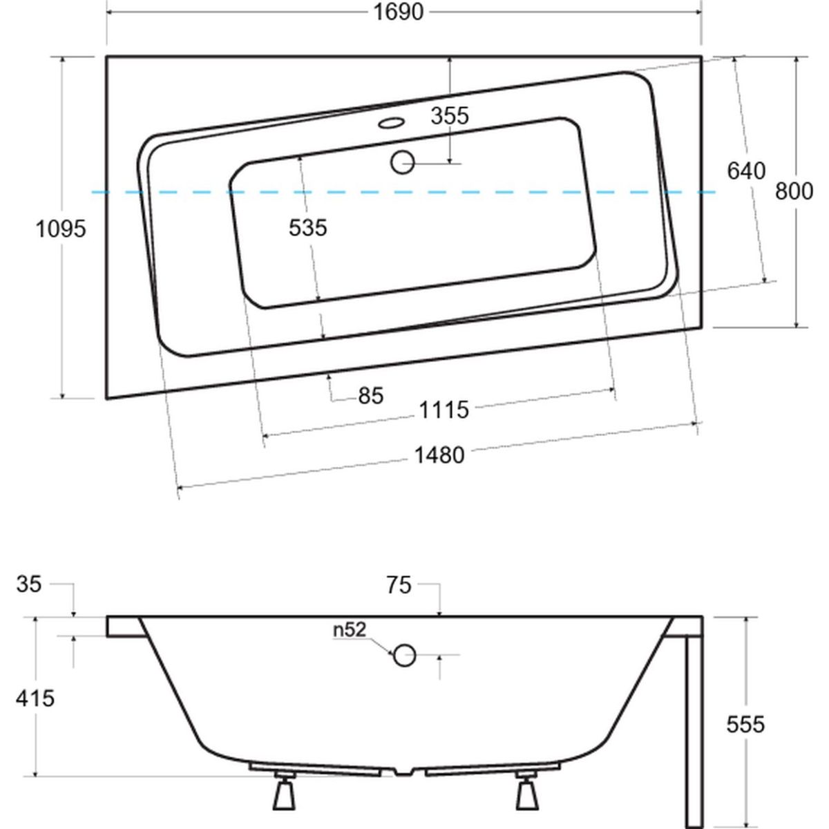 - längere Seite 169 cm