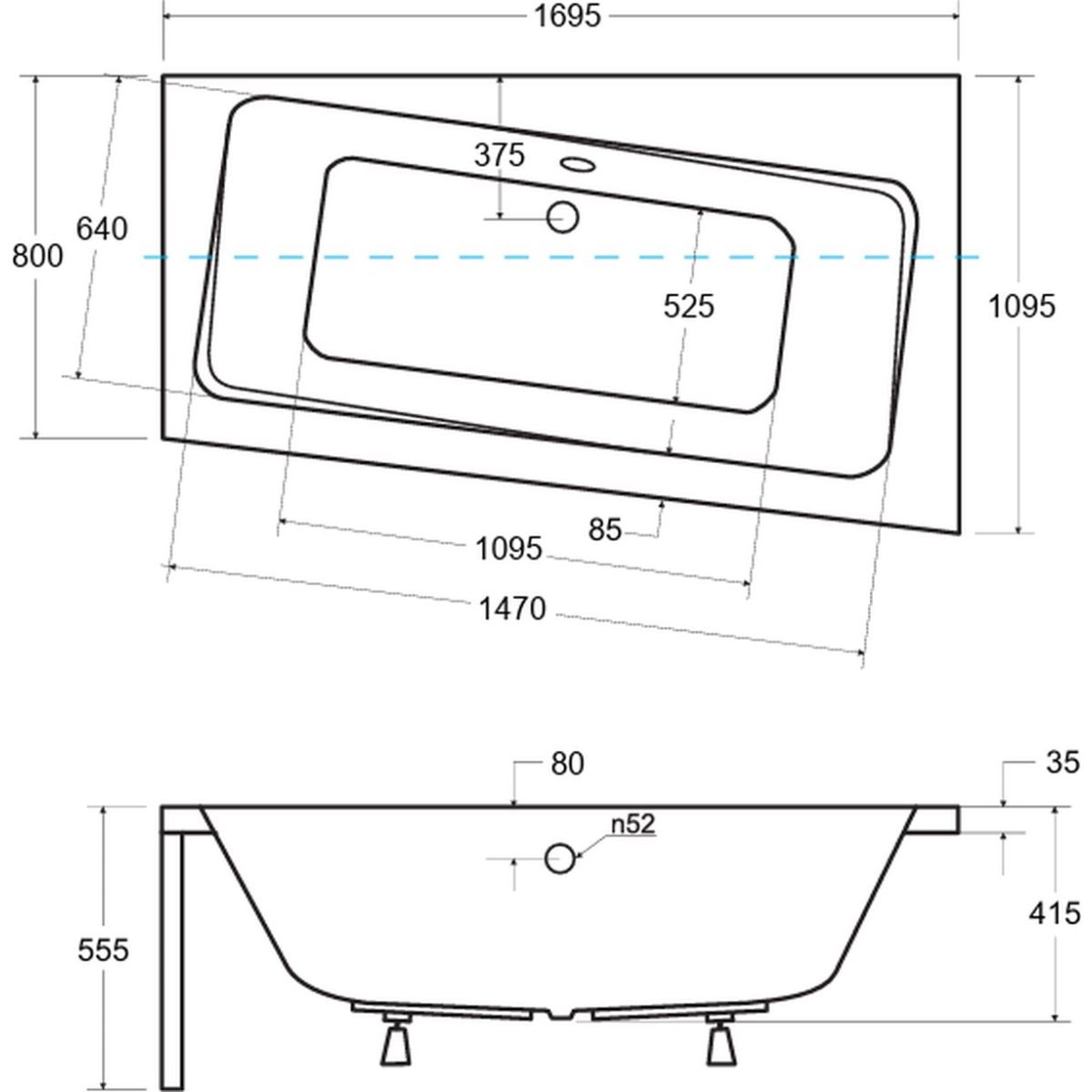 - längere Seite (A): 169,5 cm