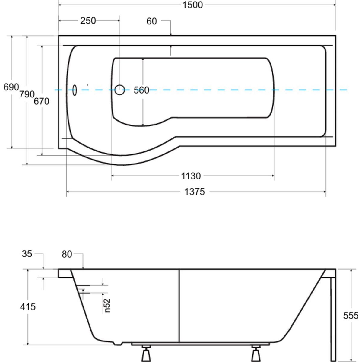 Besco Inspiro Badewanne mit Duschwand 150x69 cm linksseitig weiß #WAI-150-NLE