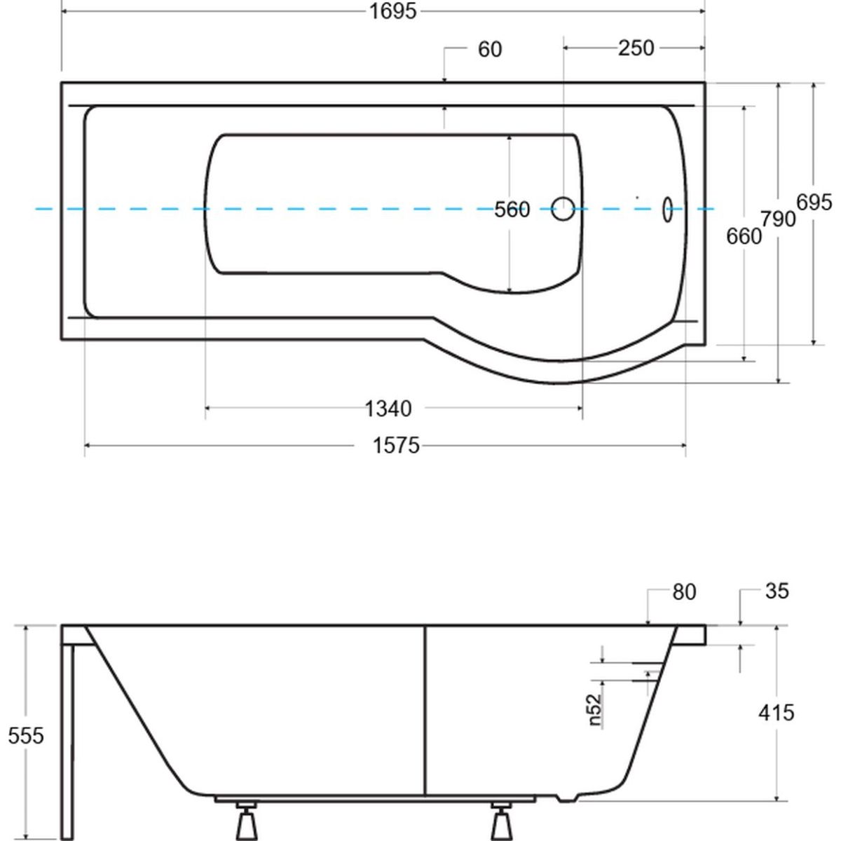Besco Inspiro Badewanne mit Duschwand 169.5x69.5 cm rechtsseitig weiß #WAI-170-NPR