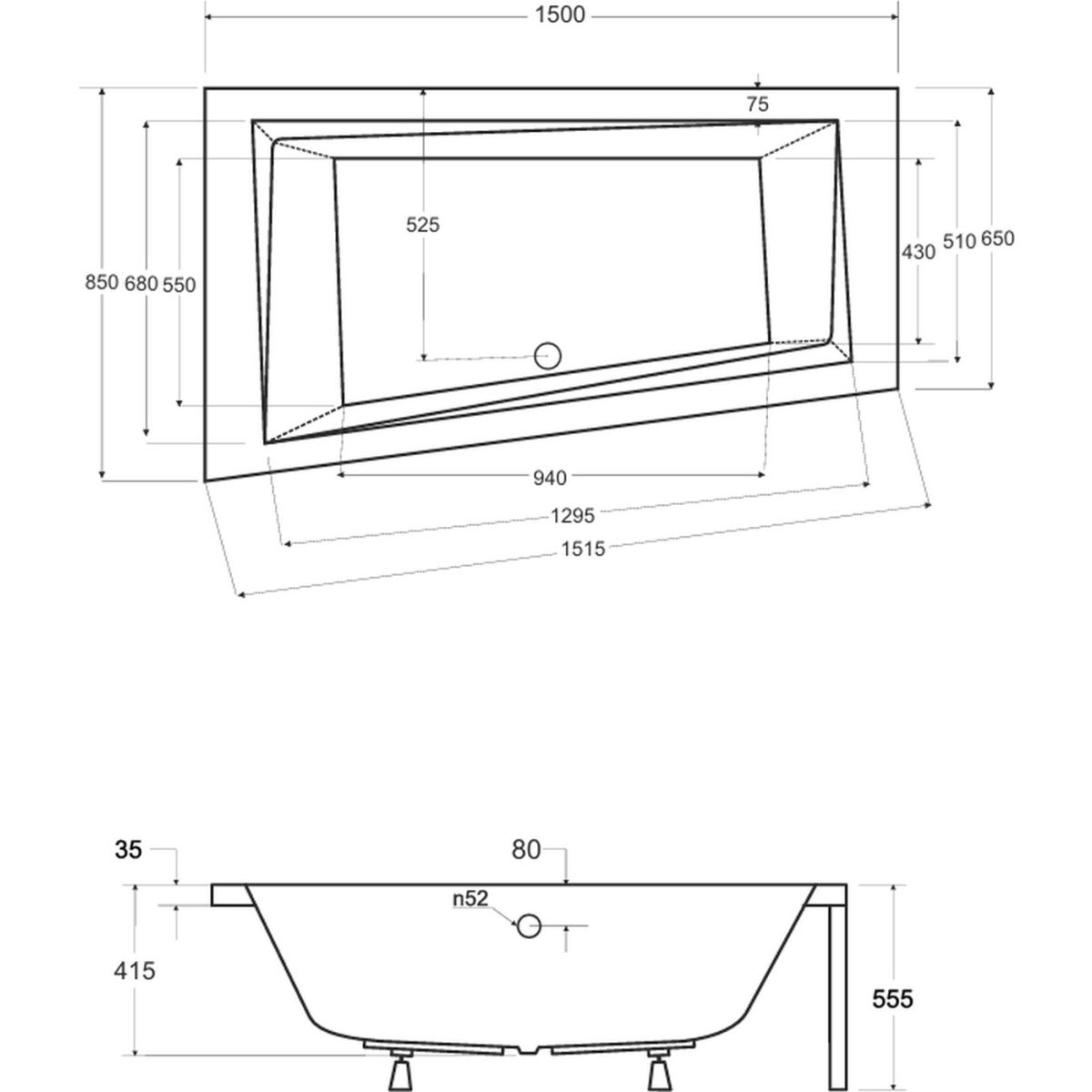Besco Intima Eckbadewanne 150x85 cm linksseitig weiß #WAIT-150-NL