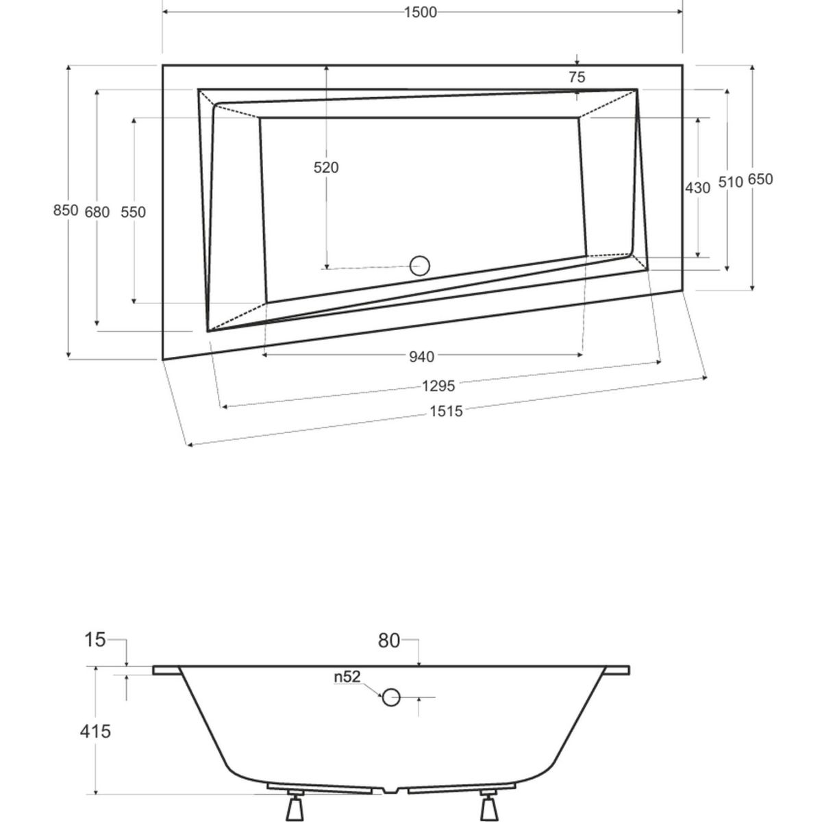 - asymmetrische Badewanne Slim