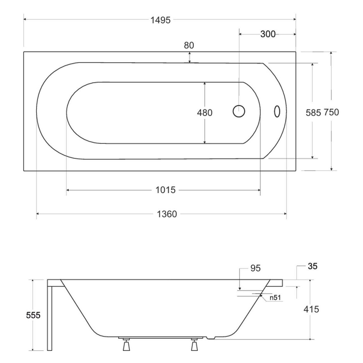 Besco Intrica Rechteckige Badewanne 149.5x75 cm weiß #WAIN-150-PK