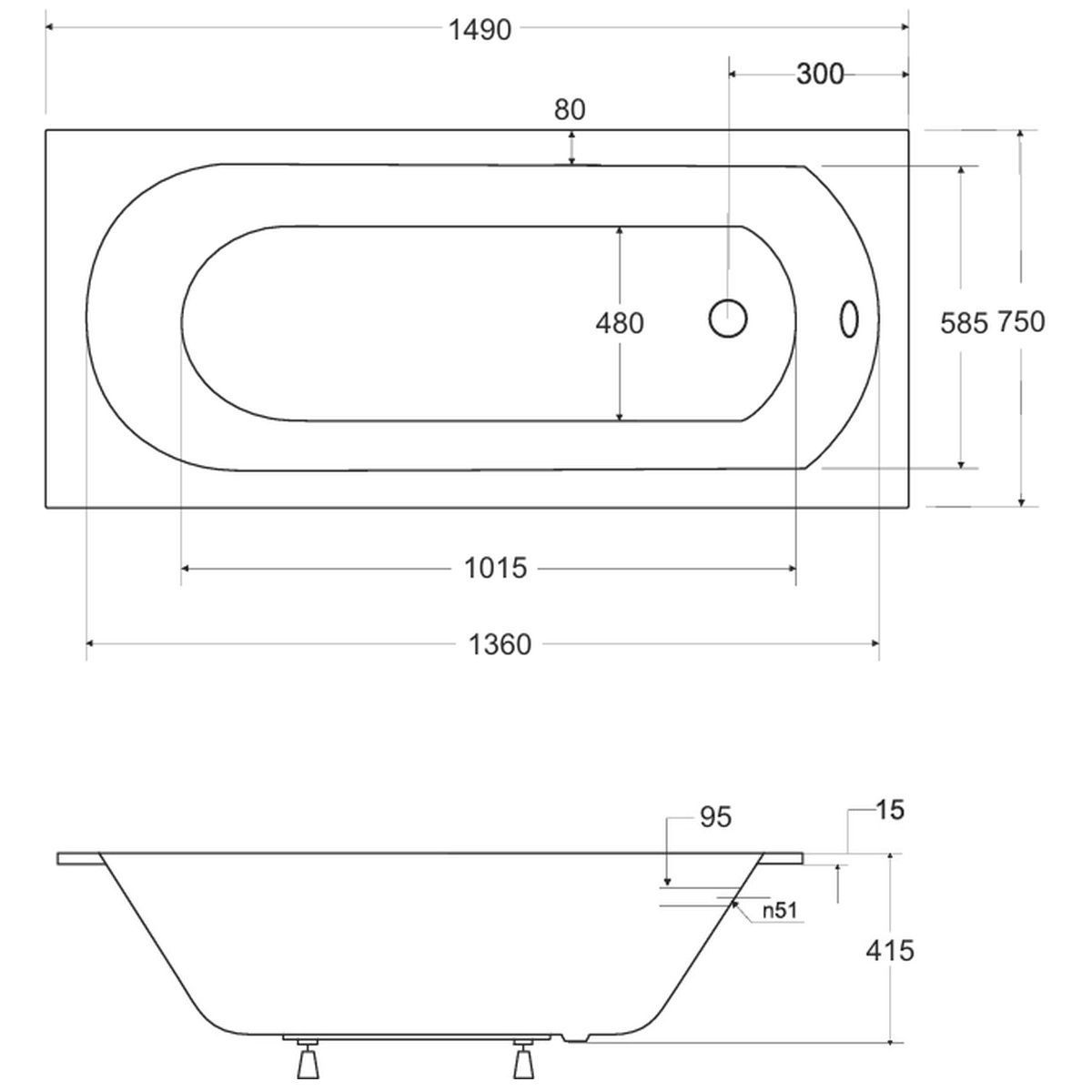 Besco Intrica Schlanke rechteckige Badewanne 149x75 cm weiß #WAIN-150-SL