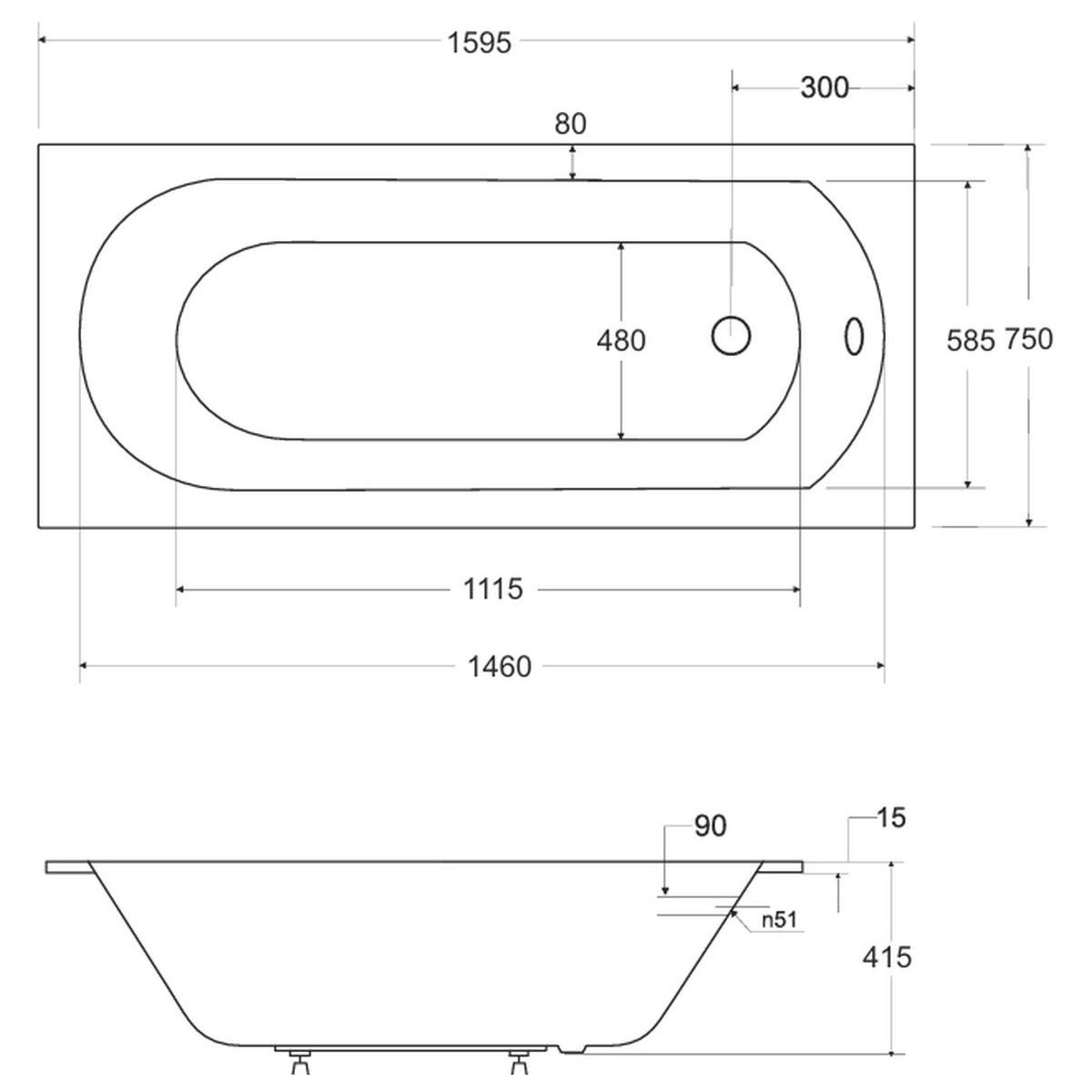 Besco Intrica Schlanke rechteckige Badewanne 159.5x75 cm weiß #WAIN-160-SL