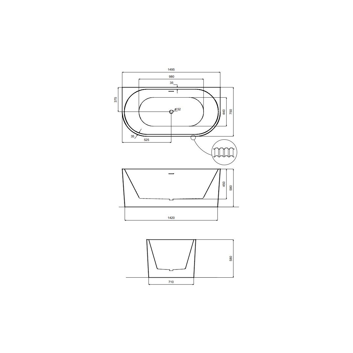 - verfügt über eine Revisionsöffnung an der Rückseite der Wanne, die einen einfachen Zugang zu den Siphonanschlüssen ermöglicht
