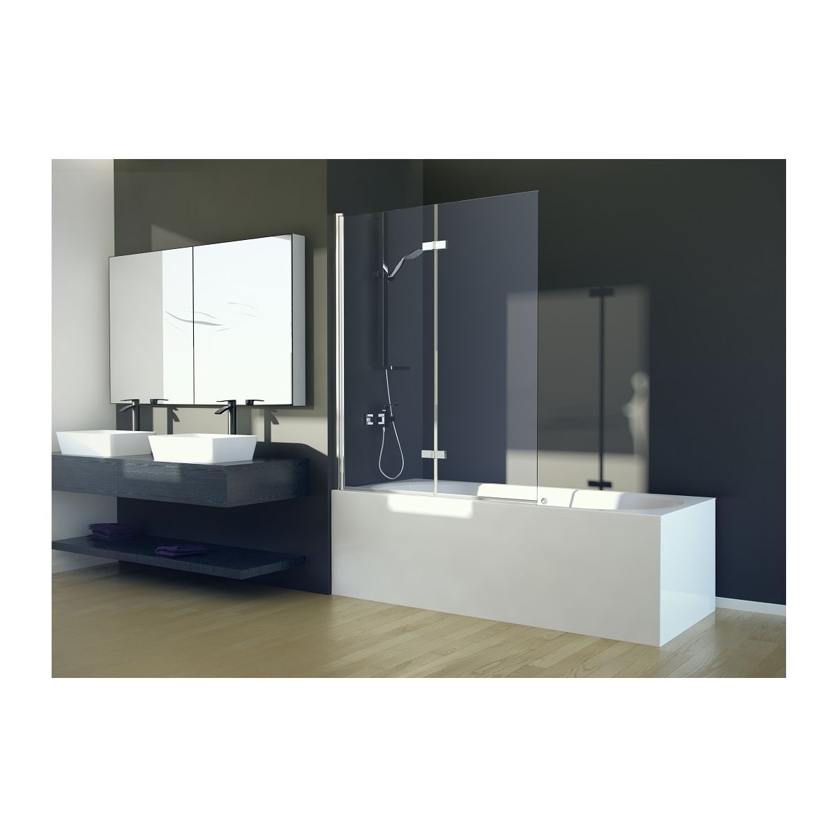 Besco Lumix Badewannenabtrennung 100 cm zweigeteilt chrom Glanz/durchsichtiges Glas PL-2S