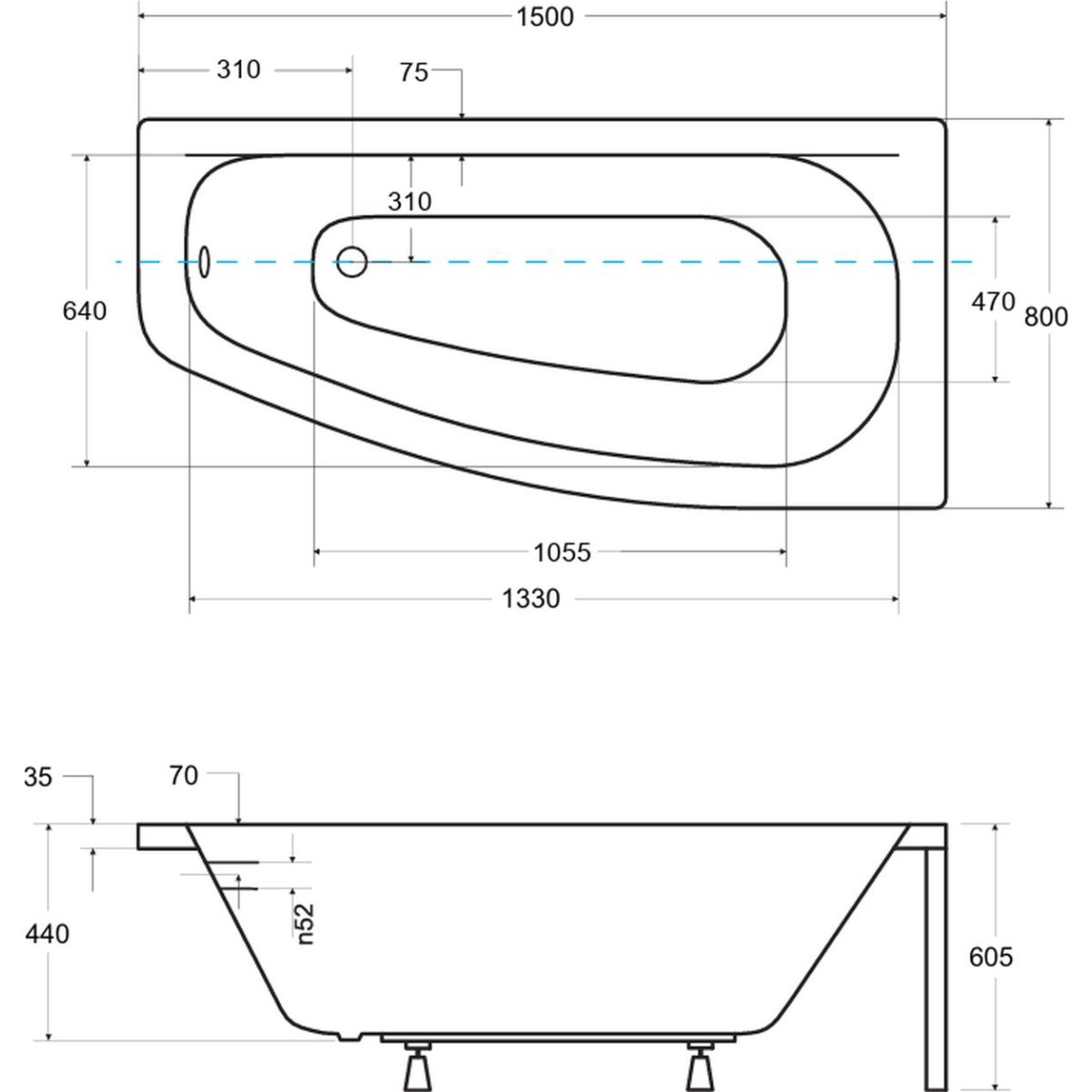 Besco Luna Eckbadewanne 150x80 cm rechtsseitig weiß #WAL-150-NP