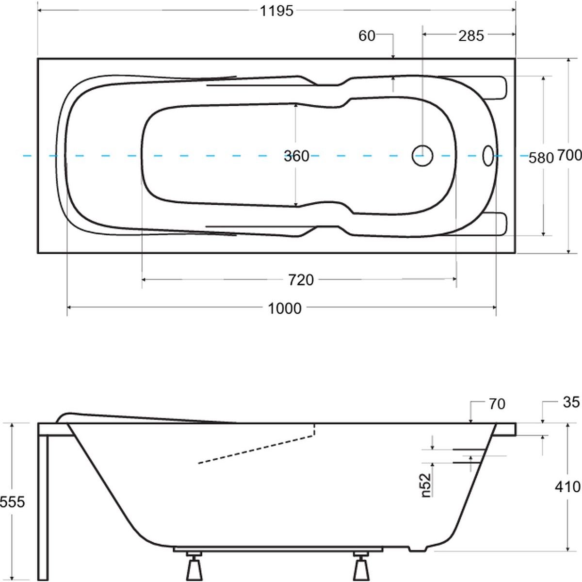 - Der Abfluss befindet sich an der Seite der Wanne