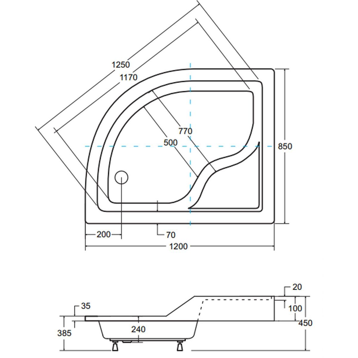 Besco Maxi Halbrunde Duschwanne 120x85 cm weiß #BAM-120-NL