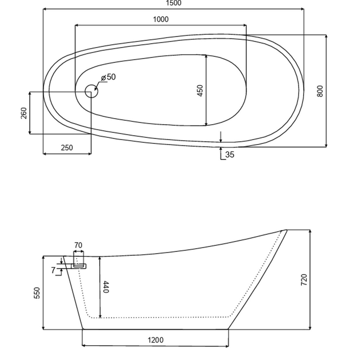 Besco Melody Freistehende Badewanne 150x80 cm oval weiß #WAS-150-MZL