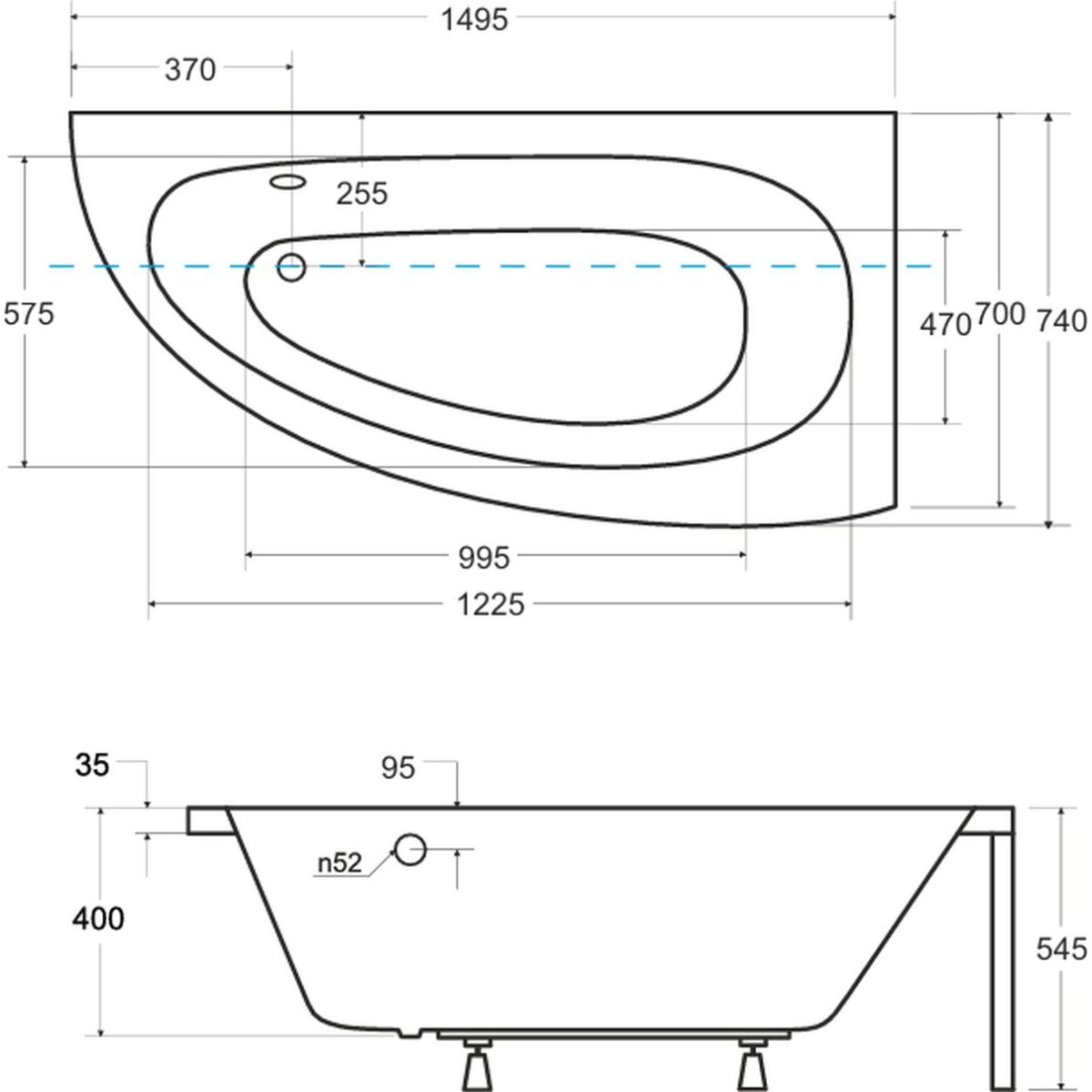 - längere Seite (A): 149,5 cm