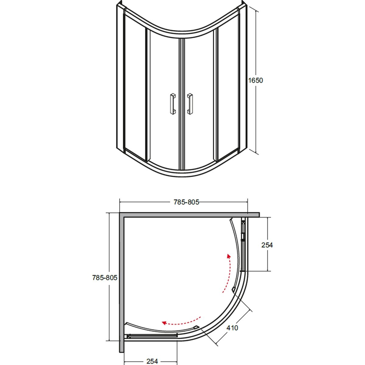 Besco Modern 165 Dusche 80x80 cm halbrund chrom Glanz/Mattglas MP-80-165-M