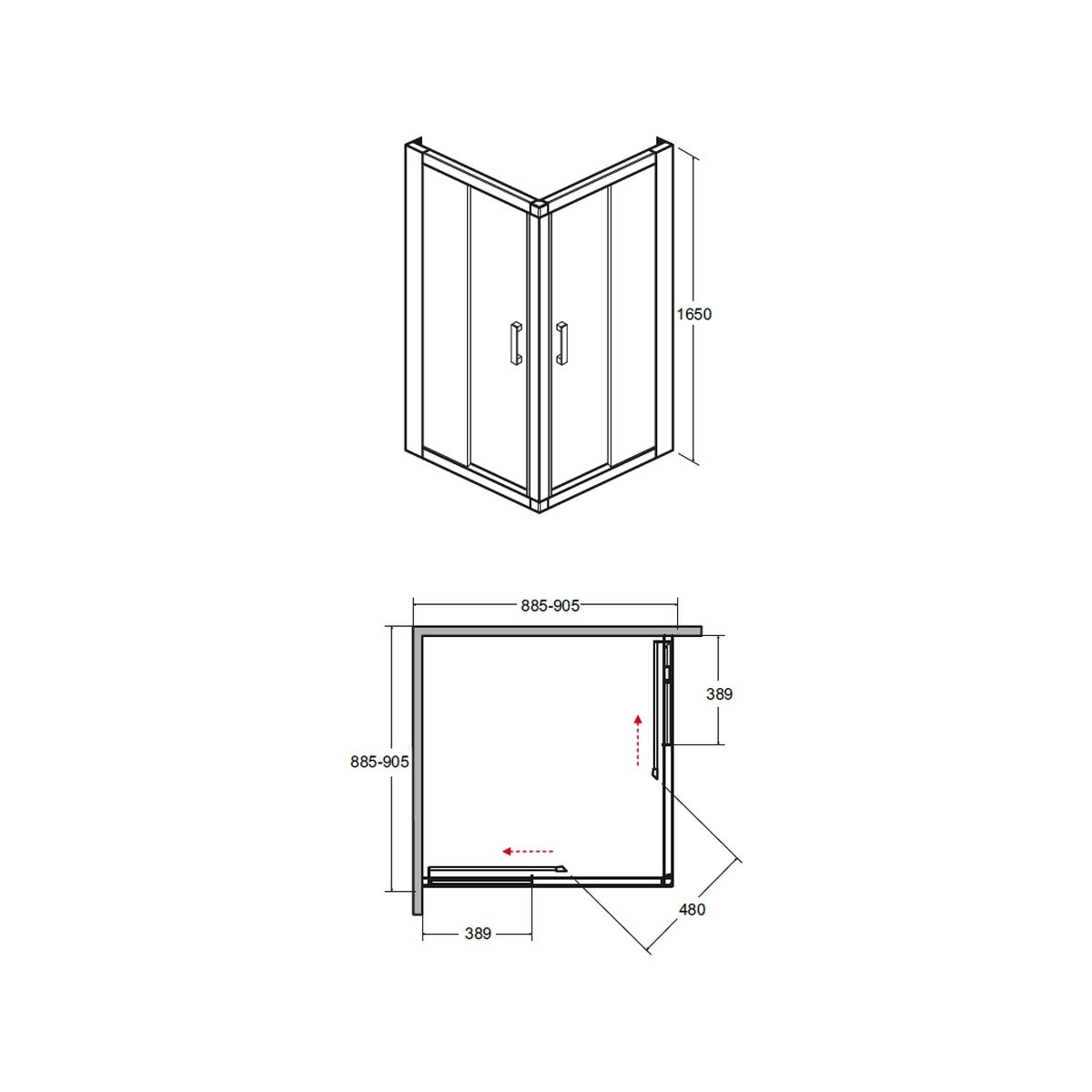 Besco Modern 165 Dusche 90x90 cm quadratisch chrom Glanz/Mattglas MK-90-165-M