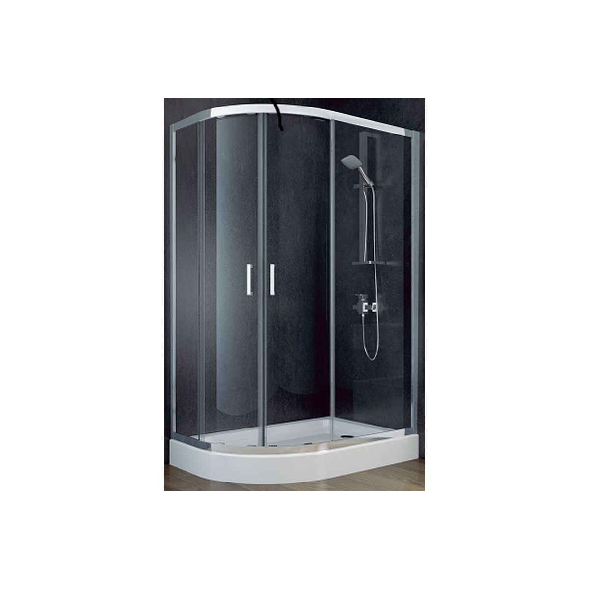 Besco Modern Dusche 100x80 cm halbrund chrom Glanz/Graphitglas MA-108-190-G