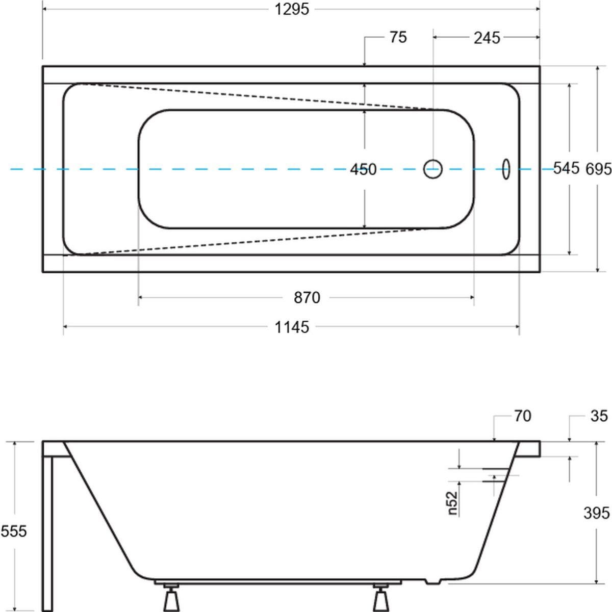 Besco Modern Rechteckige Badewanne 130x70 cm weiß #WAM-130-MO