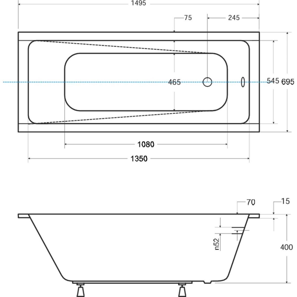 Besco Modern Schlanke rechteckige Badewanne 149.5x69.5 cm weiß #WAM-150-SL