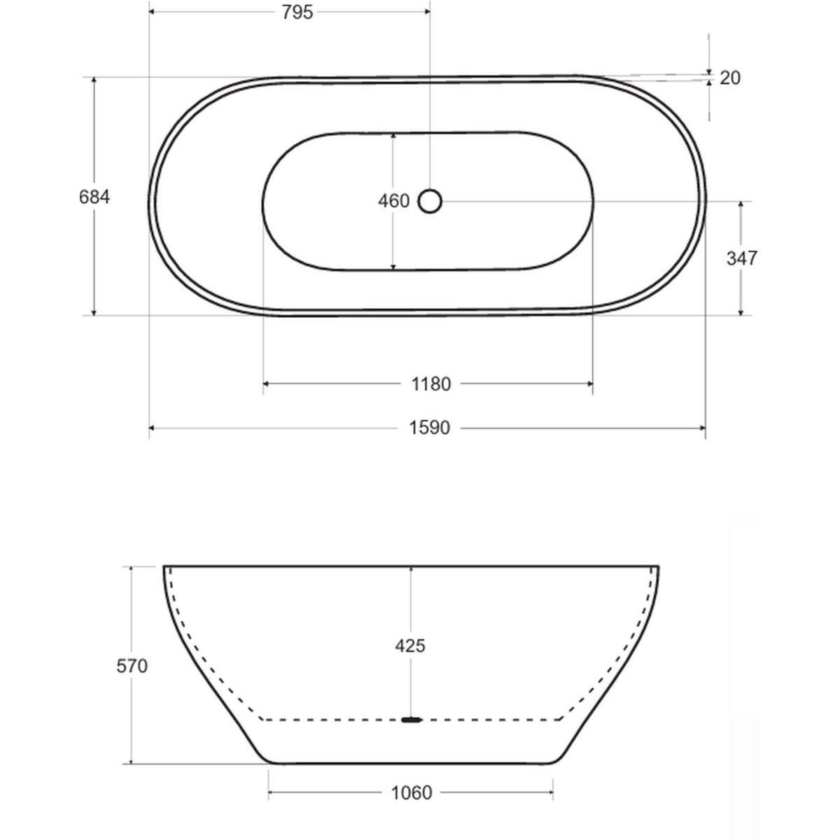 Besco Moya Freistehende Badewanne 159x68.4 cm oval weiß #WMD-160-MKC