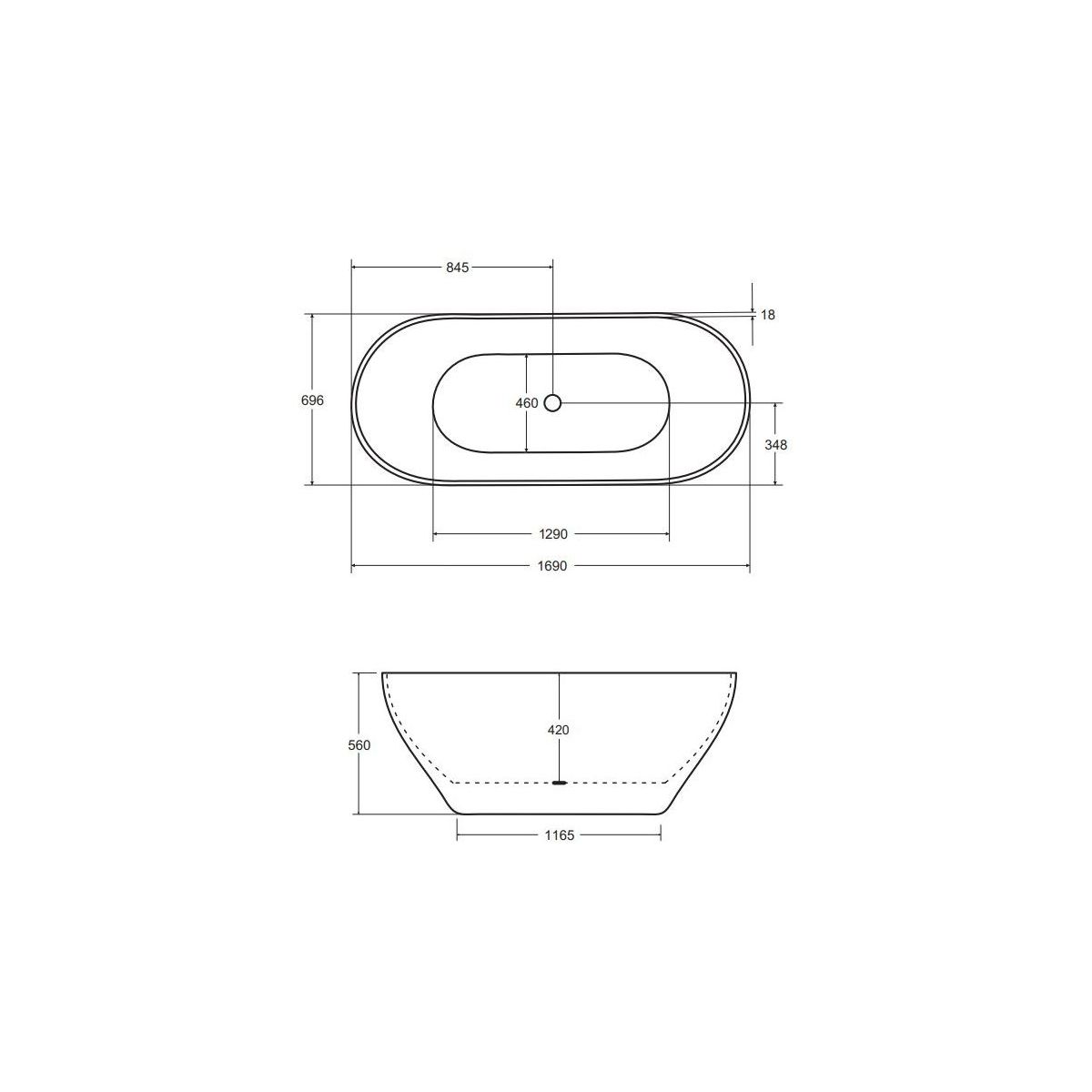 Besco Moya Freistehende Badewanne 170x72 cm oval weiß #WMD-170-MKW