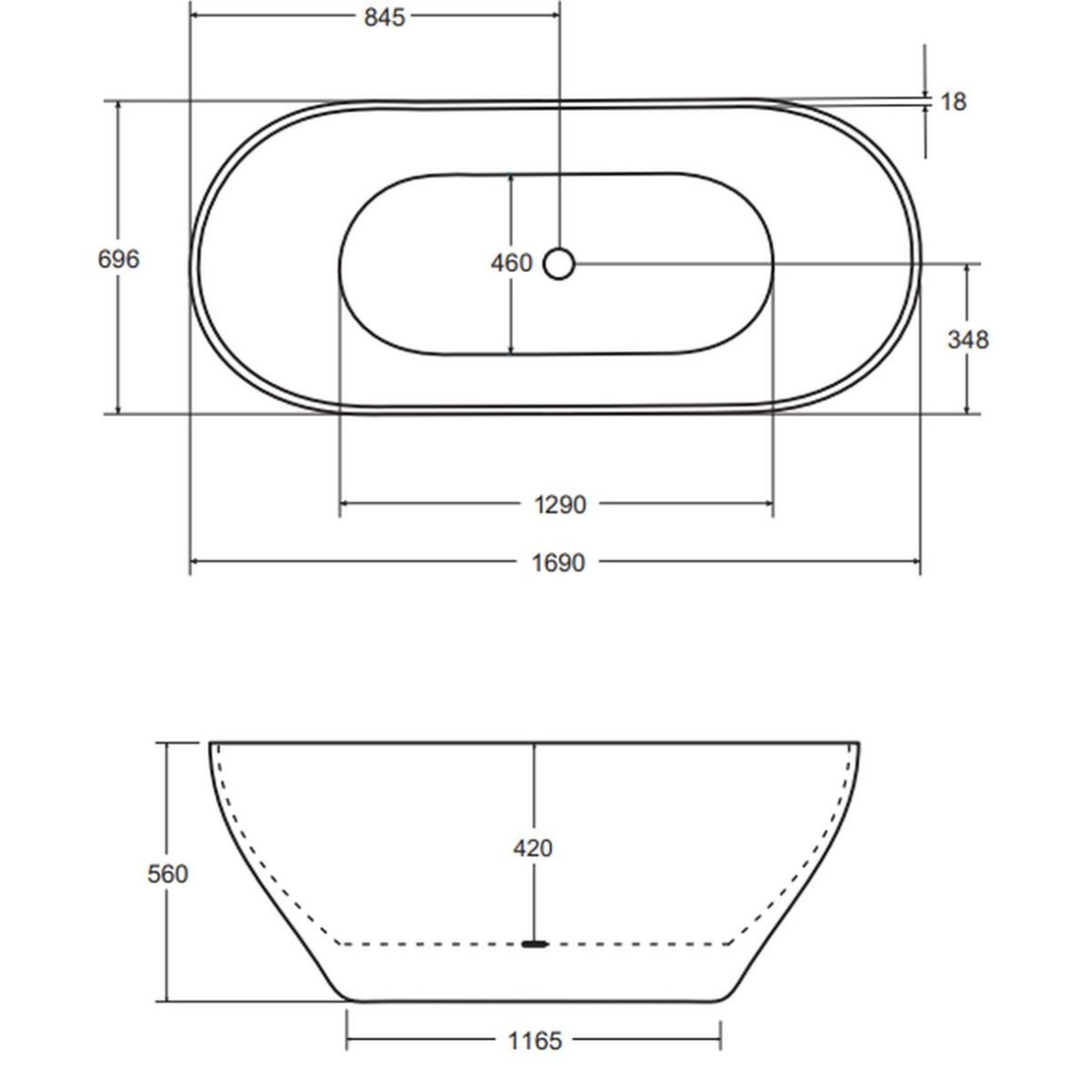 Besco Moya Freistehende Badewanne 170x72 cm oval weiß #WMMB-170MKB