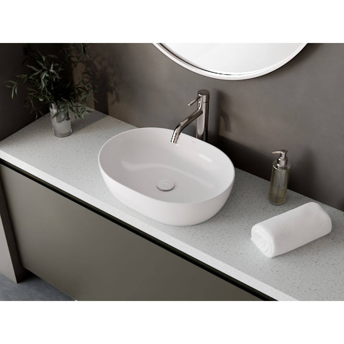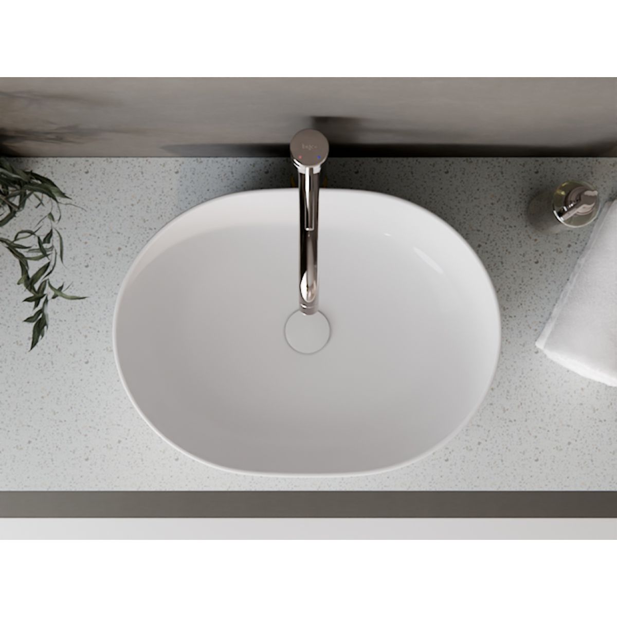 Besco Moya Waschbecken 48.5x35 cm oval Aufsatzwaschbecken weiß UNC-49-MOB