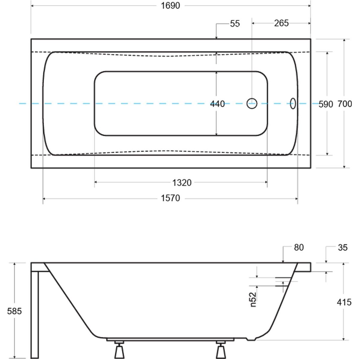 Besco Optima Rechteckige Badewanne 170x70 cm weiß #WAO-170-PKP