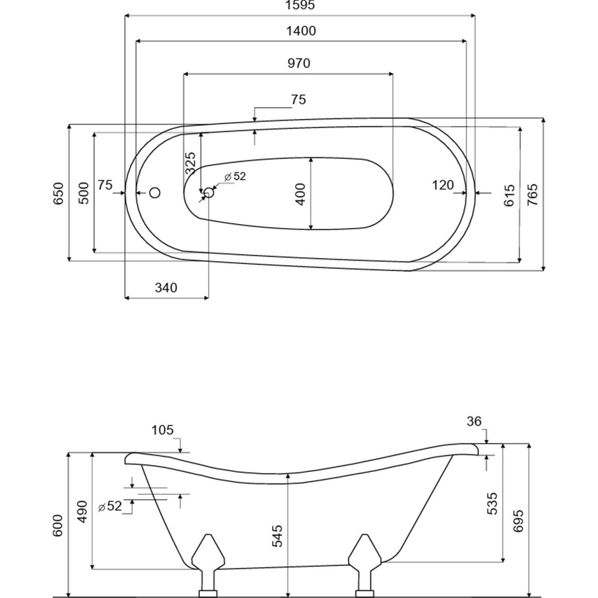 Besco Otylia Freistehende Badewanne 159.5x76.5 cm oval weiß #WKO-160W+C