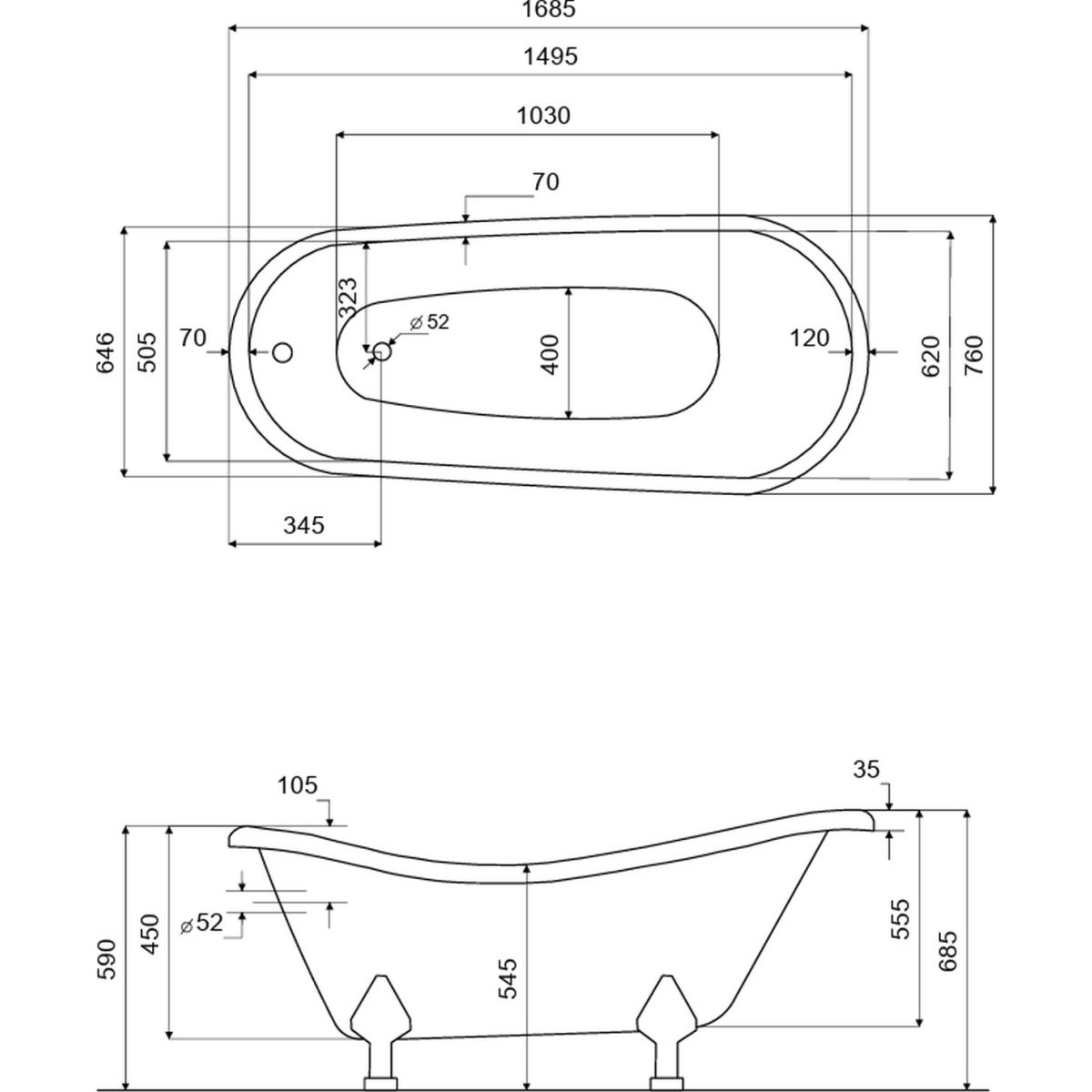 Besco Otylia Freistehende Badewanne 168.5x76 cm oval weiß #WKO-170W+C