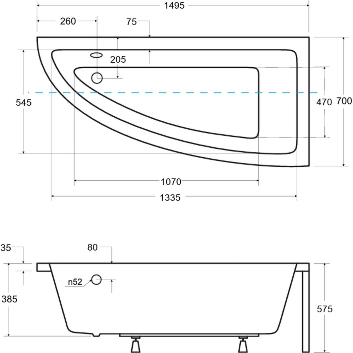 Besco Praktika Eckbadewanne 149.5x70 cm rechtsseitig weiß #WAP-150-NP