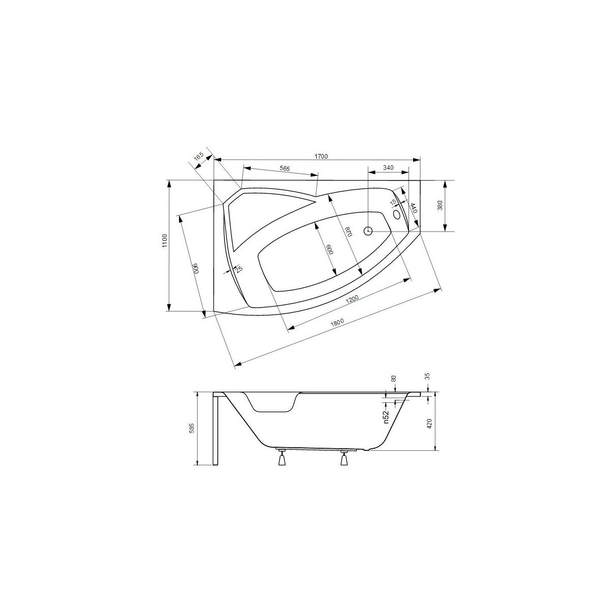 Besco Rima Eckbadewanne 170x110 cm linksseitig weiß #WAR-170-NL