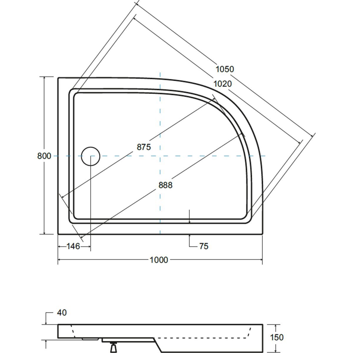 Besco Saturn Halbrunde Duschwanne 100x80 cm weiß #BAS-100-NP