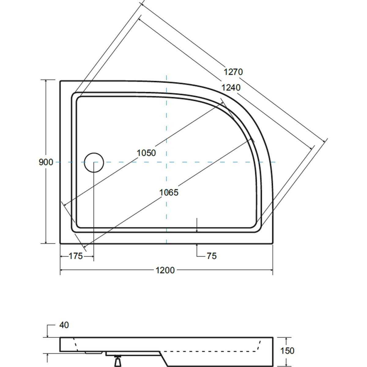 Besco Saturn Halbrunde Duschwanne 120x90 cm weiß #BAS-120-NP