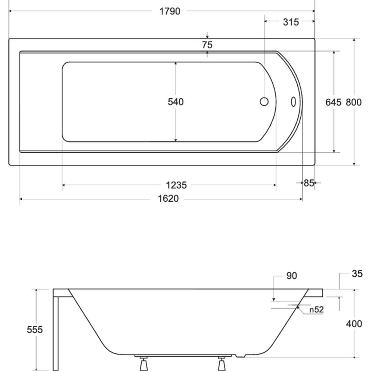 Besco Shea Rechteckige Badewanne 179x80 cm weiß #WAS-180-PK