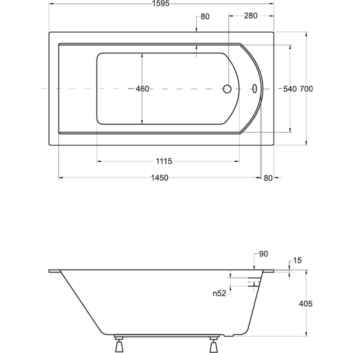 Besco Shea Slim Schlanke rechteckige Badewanne 159.5x70 cm weiß #WAS-160-SL