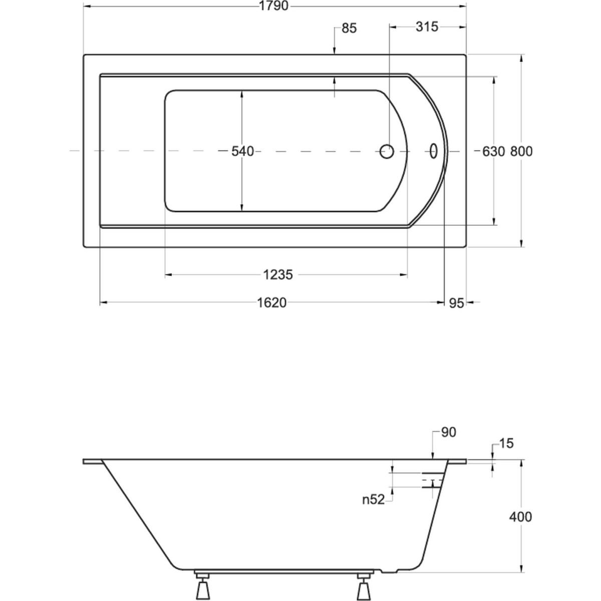 Besco Shea Slim Schlanke rechteckige Badewanne 179x80 cm weiß #WAS-180-SL