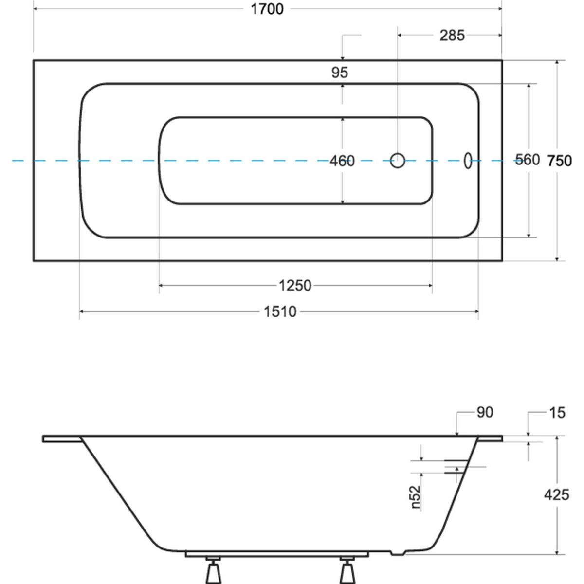 Besco Talia Slim Rechteckige Badewanne 170x75 cm weiß #WAT-170-SL
