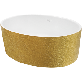 Besco Uniqa Waschbecken 46x32 cm oval Aufsatzwaschbecken weiß-gold #UMD-U-NGZ