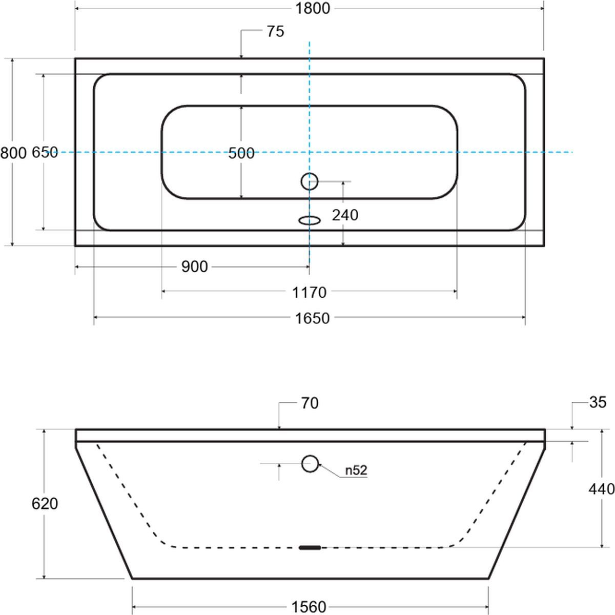 - Füße, Klick-Klack-Siphon oder automatischer Siphon mit Überlauf im Preis der Wanne enthalten