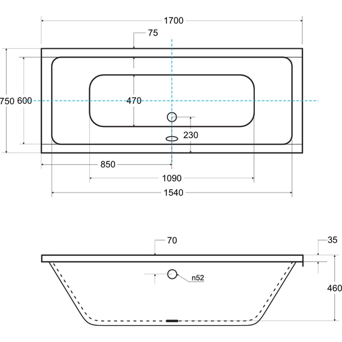 - Klick-Klack-Siphon oder automatischer Siphon mit Überlauf im Preis der Wanne enthalten