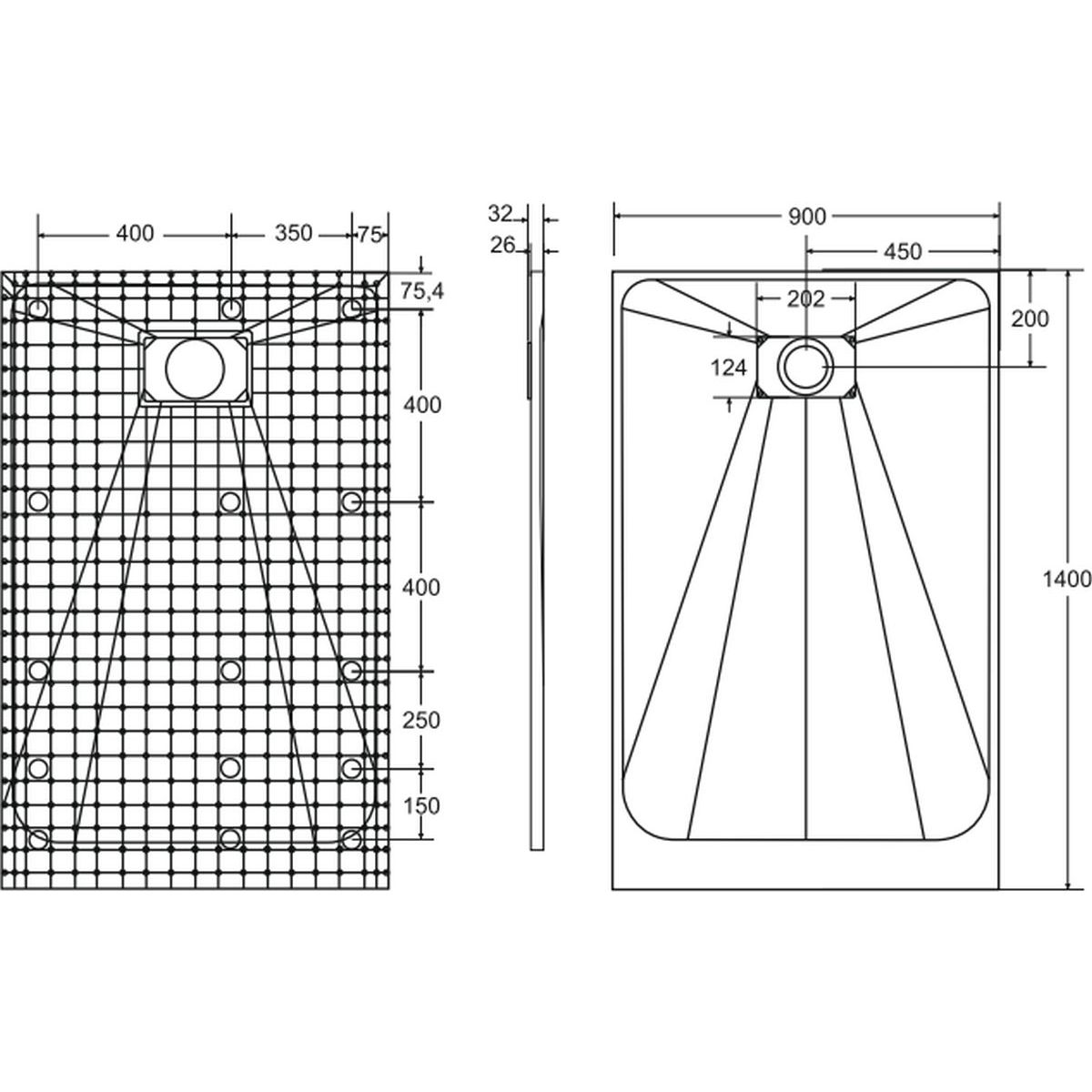 Besco Vexo Rechteckige Duschwanne 140x90 cm weiß BV-140-90-P