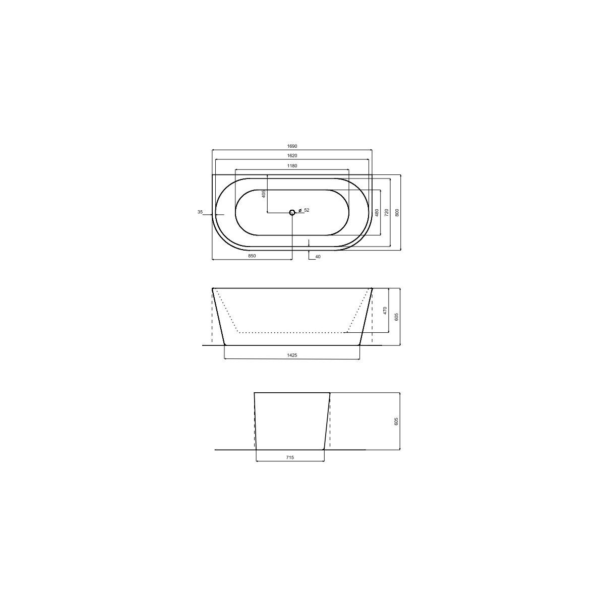 Besco Vica Wandmontierte Badewanne 169x80 cm oval weiß #WAS-170VNBO