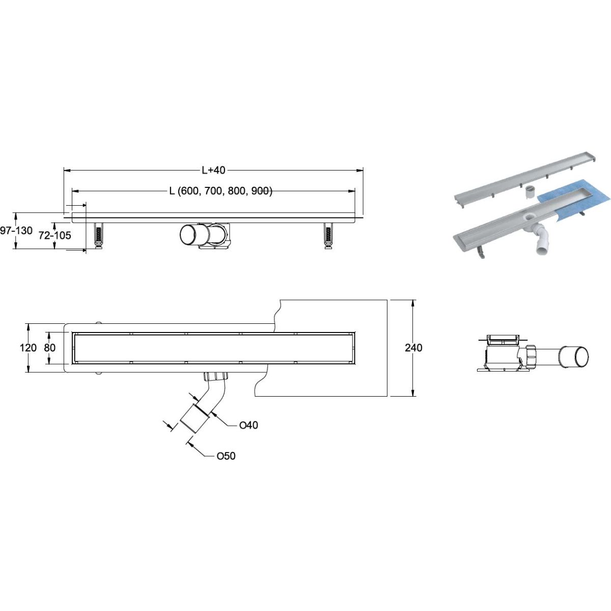 - Im Lieferumfang enthalten: Rinne mit Siphon und Befestigungsfüßen, Rost und Dichtungsmatte