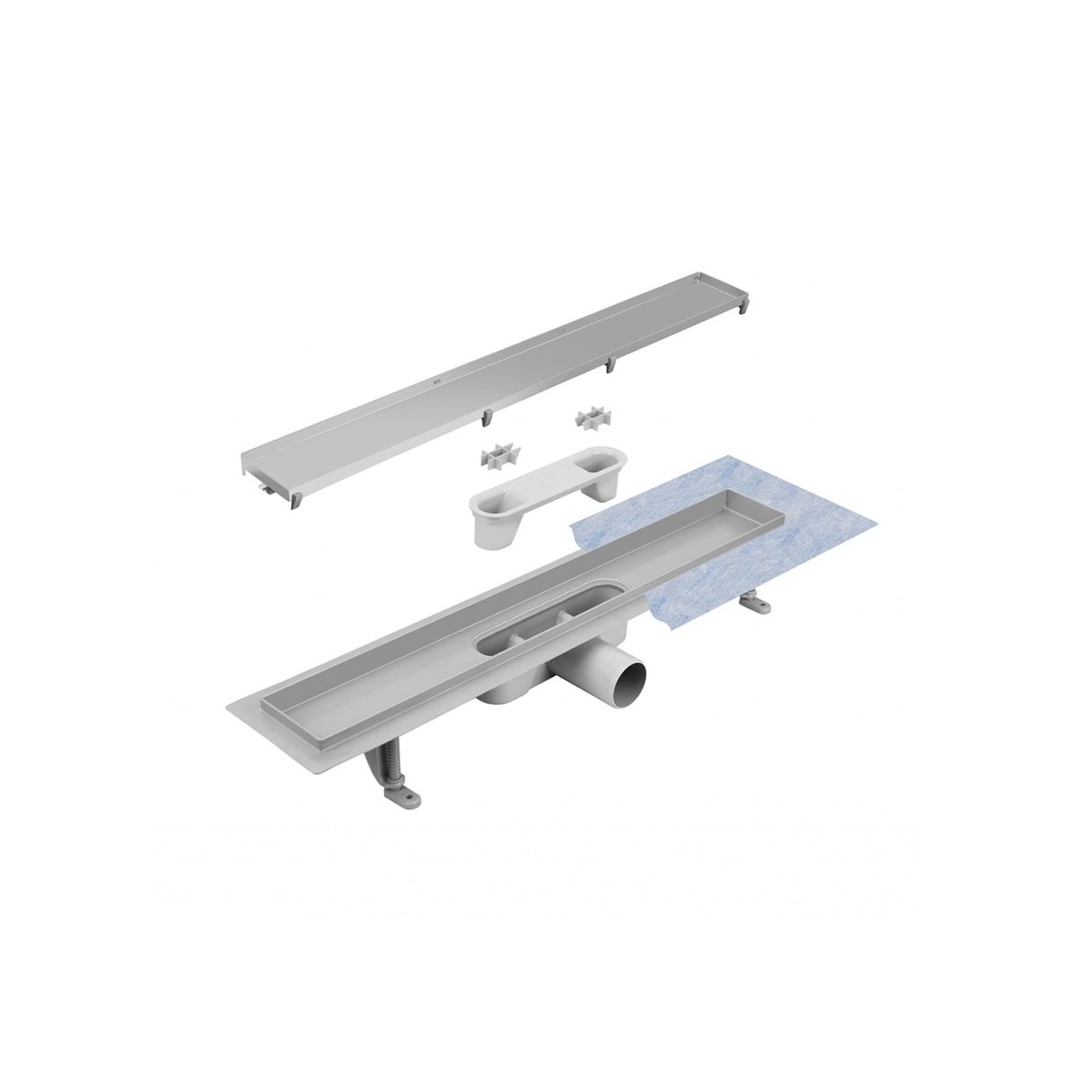 - Set enthält: Rinne mit Siphon und Befestigungsfüßen, Rost und Dichtungsmatte