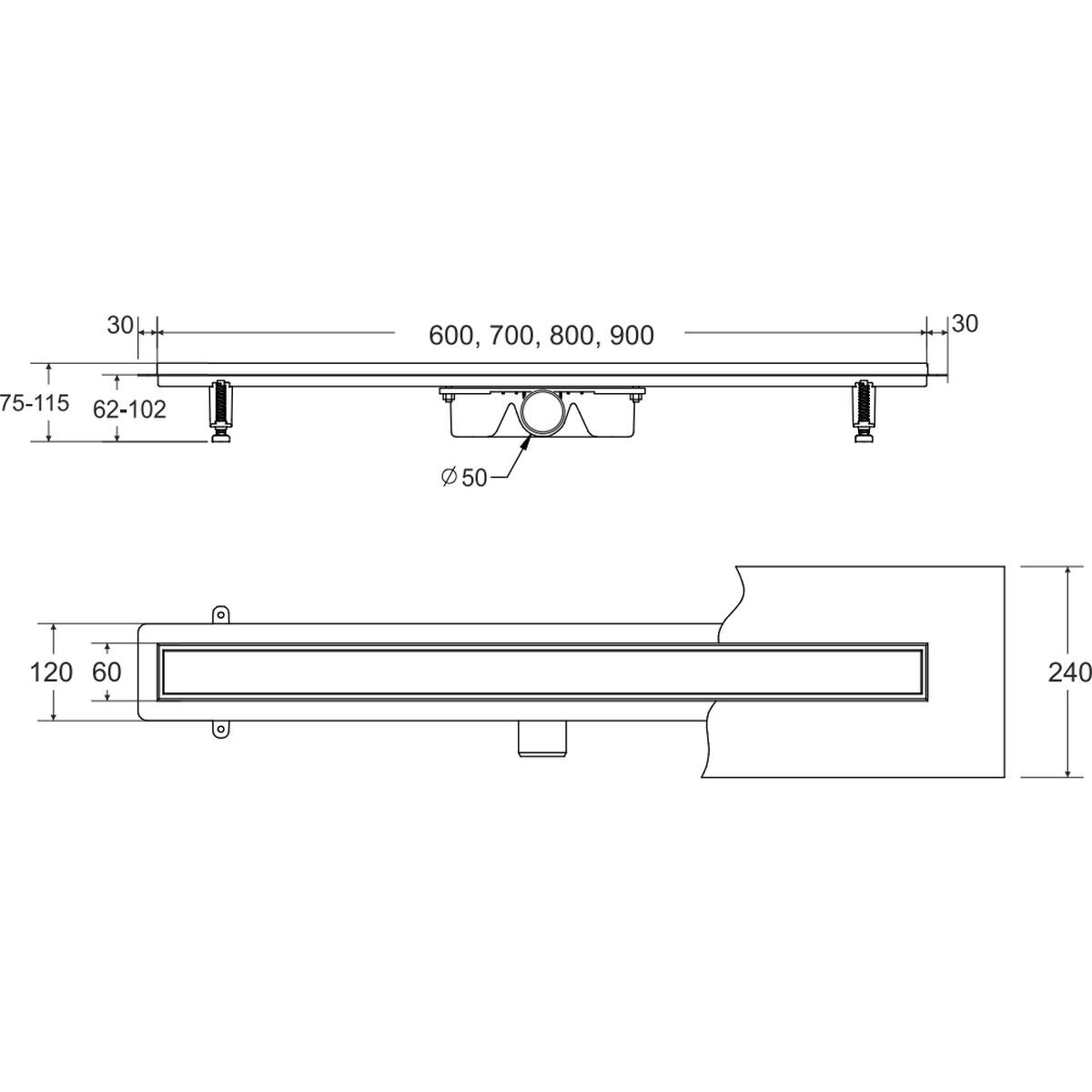 - Set enthält: Rinne mit Siphon und Befestigungsfüßen, Rost und Dichtungsmatte