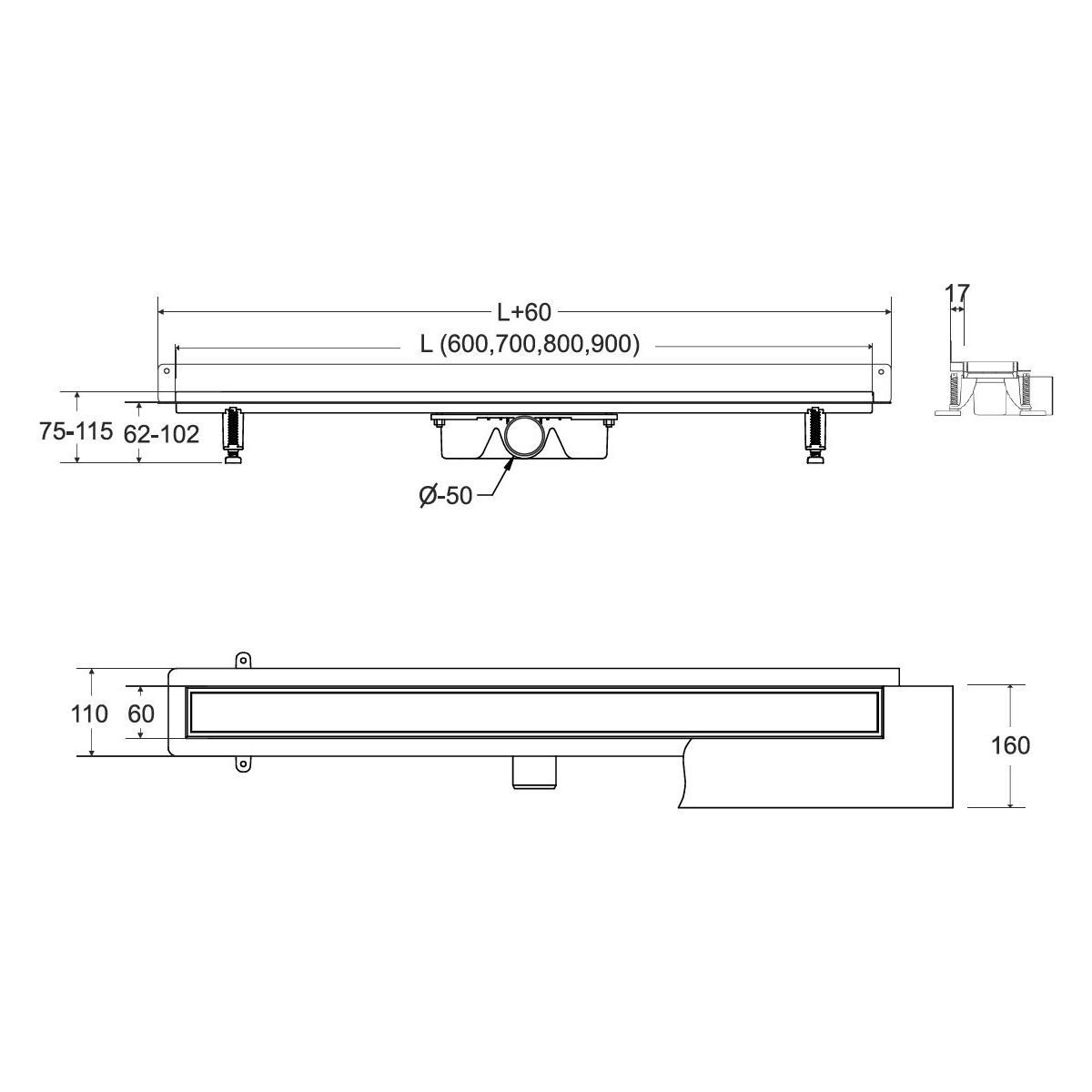 - Im Lieferumfang enthalten: Rinne mit Siphon und Befestigungsfüßen, Rost und Dichtungsmatte